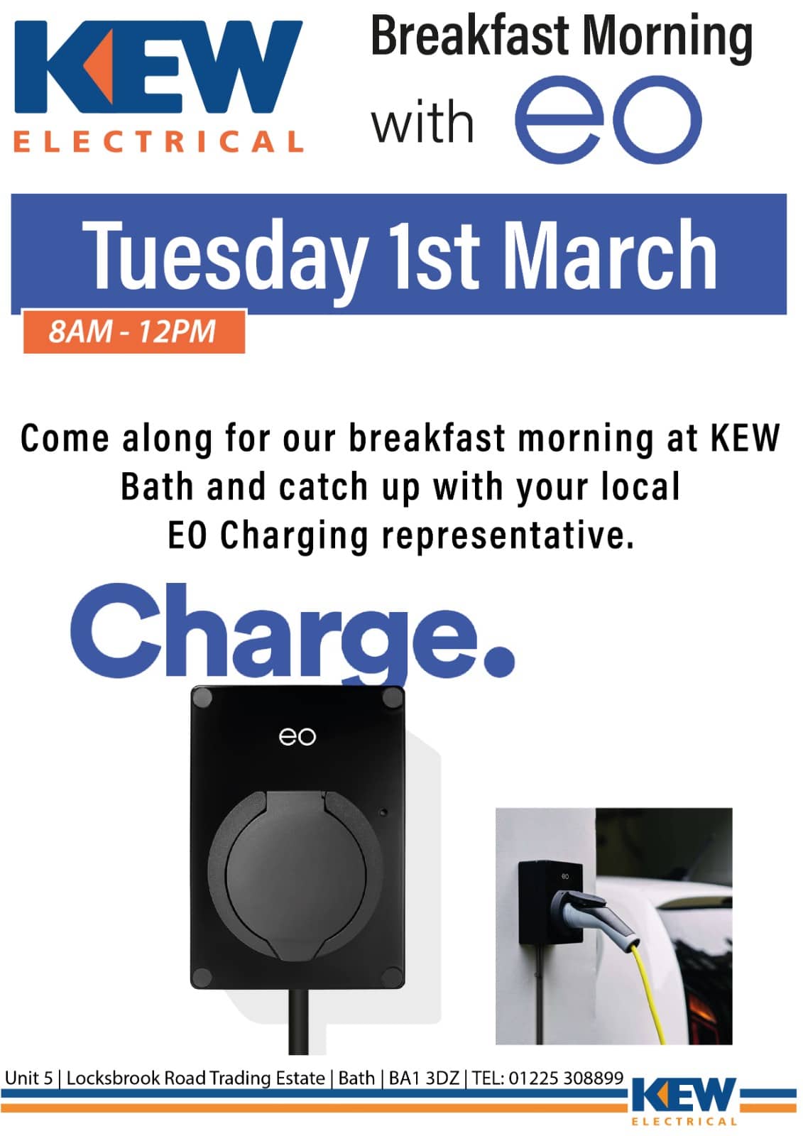 Get down to KEW Electrical Bath on the 1st March for a breakfast morning with EO Charging. With the big surge in electrical vehicles, and the increased need for access to EV charging, meet Ricky from EO Charging onsite for demonstrations and solutions for your next project.