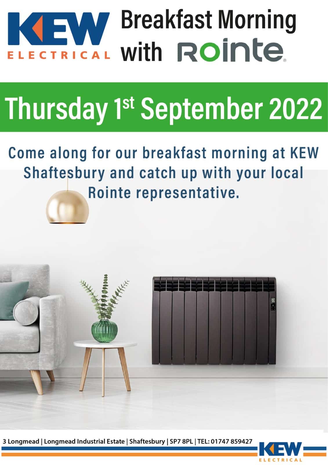 Come along to KEW Shaftesbury on Thursday 1st September for a trade morning and all the latest in electric heating. The team will be joined by Rointe, so pop along if you’re an electrician or electrical contractor in the area. Full details below.
